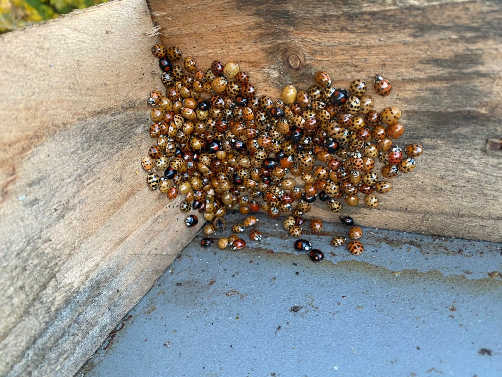 It’s not only bee that live in a hive. During the cold weather other insects hibernate under the roof.